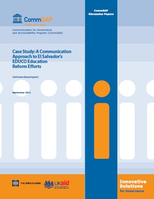 This paper, published by the Communication for Governance and Accountability Programme (CommGAP), studies education reform (known as Education with Community Participation Programme – EDUCO) in post-civil war El Salvador and looks specifically at the communication plan that accompanied reform in order to win public support for changes in the educational system. The paper asserts that a "special emphasis on communication strategies can build consensus, inform communities, and improve public support for complex reforms."