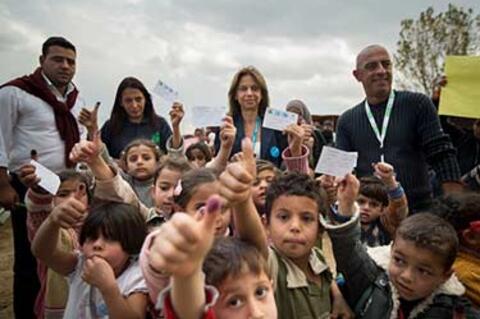 "On the morning of 8 November, scores of Syrian refugee children at the Omariya informal settlement in east Lebanon held a joyful demonstration amongst the tents in their camp. Accompanied by social worker from the Lebanese NGO [non-governmental organisation] Beyond, they held colourful placards with the word 'polio' in Arabic crossed out, and they chanted, 'Mom, Mom, I want to get vaccinated! Dad, Dad, I want to get vaccinated!'"