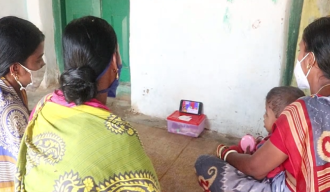 - Dissemination of re-purposed UPAVAN videos through WhatsApp: Topics were sequenced based on season and community preference, as informed by experience from the UPAVAN trial. On average, videos were 4 minutes long, with critical messages ("knowledge recall points") written in the local language (Odiya) at key points in videos, and 49 seconds of COVID-19 guidelines were included at the end of each video. Facilitators formed village-level WhatsApp groups for disseminating videos and WhatsApp viewers' groups, where women who owned a smartphone were grouped with women who did not own a smartphone to watch videos together. Facilitators shared one video per week over 6 months.