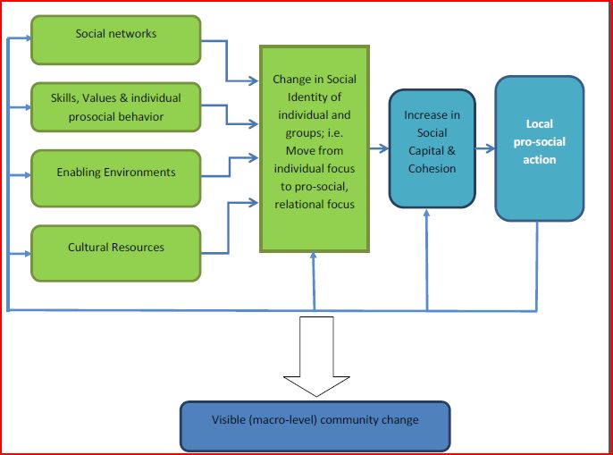 - the growth of relationships in the community; the development of skills, attitudes, intentions, norms, and perceived behavioural control required for individual pro-social behaviour to be effected - "Self-reported skills for core participants significantly improved after HCTT interventions."