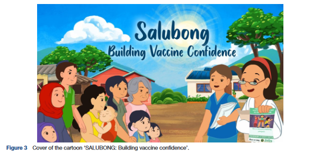 The final intervention video, which may be viewed below, is a 5-minute animated cartoon entitled: "Salubong: Building Vaccine Confidence", which features stories of Filipino families about vaccines. The cartoon uses a narrative and empathic format tailored to the Filipino cultural setting, featuring diverse characters of different ages, household compositions and income, and ethnic backgrounds, as well as appealing colours for optimal contrast. The original video is in Filipino, and there are two other versions with Filipino and English subtitles.