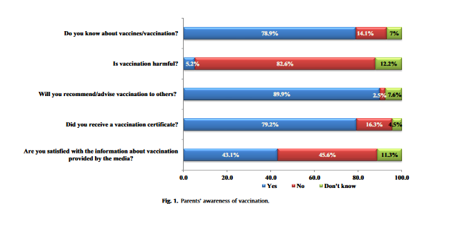 According to the researchers, the high parental acceptance of childhood vaccinations appeared to result from different factors, including the observation that 9 of every 10 parents sampled were knowledgeable regarding the protective role of vaccinations against potentially fatal childhood diseases. Furthermore, the majority of the parents did not encounter any challenges accessing childhood immunisation services, and the trends observed in the demographic profile of the parents sampled may have contributed to this. (The majority of the respondents had received a formal education (94.1%), were gainfully employed (62.9%) and had a regular monthly income (73.3%).) For instance, a high educational level appears to be strongly linked to better health literacy and understanding of vaccine-related information and to education and counseling provided at the interpersonal and institutional levels by healthcare professionals and at the societal level during public health education campaigns. This knowledge may enhance informed parental decision-making, acceptance, and compliance with vaccinations against childhood infectious diseases.