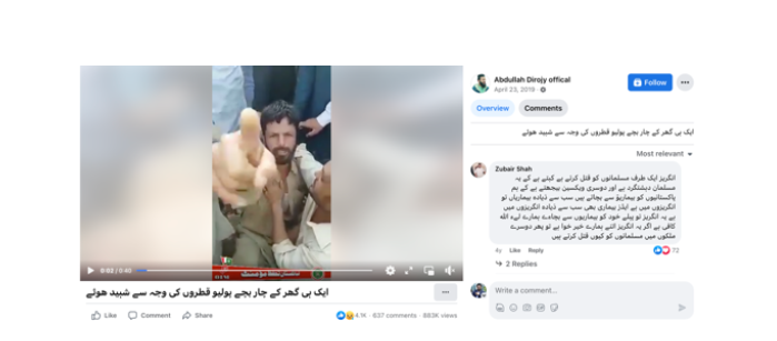 Next, the article examines collaborative initiatives undertaken by relevant government institutions and social media companies in response to the growing prevalence of polio-related misinformation. For example, the Emergency Operations Center KP launched a targeted campaign that enlisted the expertise of medical professionals, parents, and polio health workers. This campaign aimed to confront and dispel the pervasive rumours linking the vaccine to children falling ill. The Pakistani government has collaborated with Meta to block or manage the dissemination of anti-vaccination propaganda on their platforms within Pakistan. The government has also taken steps to counter polio-related misinformation through its Perception Management Initiative (PMI). Furthermore, official polio Facebook pages like End Polio Now have played a significant role in addressing vaccine-related misinformation on Facebook.