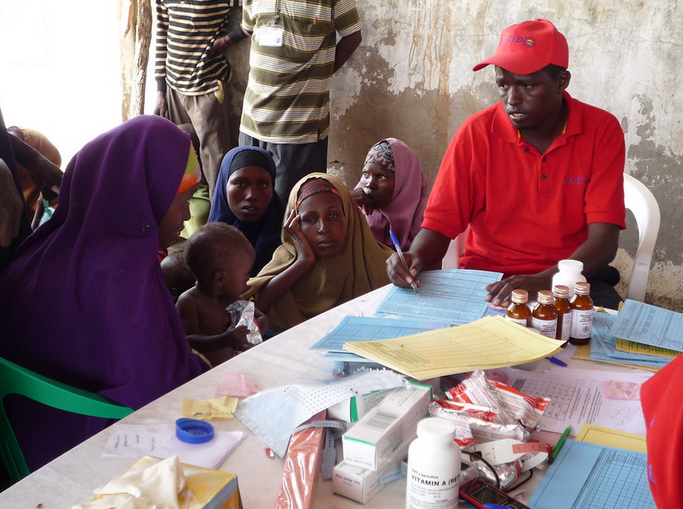 Health Policy and Planning, 38, 2023, 1198-1224. DOI: https://doi.org/10.1093/heapol/czad082. Image caption/credit: A woman and her child are reigstered at a UNICEF-supported health centre in Mogadishu, Somalia. In addition to treatment for malnutrition and measles, United Kingdom (UK) aid will help UNICEF to provide 300,000 polio vaccines, vitamin A and deworming treatment to vulnerable children. UNICEF/Iman Morooka via Flickr (CC BY-NC-ND 2.0)