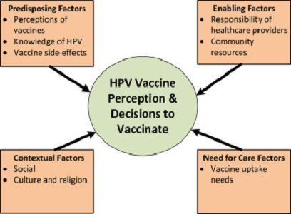 • Need for care factors - Mothers discussed how their need for HPV vaccination is elevated when they are informed of the vaccine's purpose, importance, efficacy, and side effects. Women also stated that a strong recommendation from a co-ethnic or culturally sensitive provider elevated their need for vaccination.