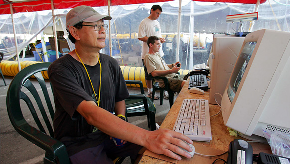 This New York Times article shares information about how long-distance wireless networks can be used in emergency situations, using the example of Mac Dearman who used such a system to assist evacuees after Hurricane Katrina. With the help of volunteers, donations, and support from the private sector, wireless systems were set up in a number of shelters for evacuees, enabling them to access information and connect with family members. Voice service was provided to the evacuees by using internet phone adapters and handsets that enabled calls to piggyback on the high-speed data connections. Mr. Dearman said that the servers on his farm that routed calls between the shelters and the internet handled 40,000 calls. Similar efforts were thrown together elsewhere in the hurricane-ravaged areas. Tropos Networks, which is based in Sunnyvale, California, and makes routers, worked with its customers, including wireless internet providers in Lafayette, Baton Rouge and New Orleans, to set up "mesh networks" that provided internet connections to Federal Emergency Management Agency shelters and others.